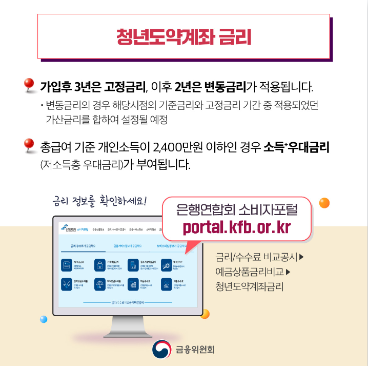 안녕하세요, 여러분! 청년 여러분의 미래를 위한 가장 중요한 투자, 바로 '청년도약계좌'에 대해 함께 이야기 나누는 시간을 가질 예정입니다. 이 블로그는 청년도약계좌에 대한 정보를 제공하고, 이를 통해 청년 여러분이 경제적으로 독립할 수 있는 기회를 제공하고자 합니다. 청년도약계좌는 청년들이 자신의 미래를 설계하고, 안정적인 생활을 위한 기반을 마련하는 데 도움을 주는 정부의 지원 프로그램입니다. 이곳에서는 청년도약계좌의 개요부터 신청 방법, 이용 혜택 등에 대한 다양한 정보를 제공할 예정입니다. 청년 여러분의 미래를 위한 첫걸음,, 청년도약계좌에 대해 함께 알아보고, 서로의 경험과 지식을 공유하는 데 도움이 되는 공간이 되기를 바랍니다. 여러분의 참여와 피드백이 이 블로그를 더욱 풍성하게 만들어갈 것입니다.