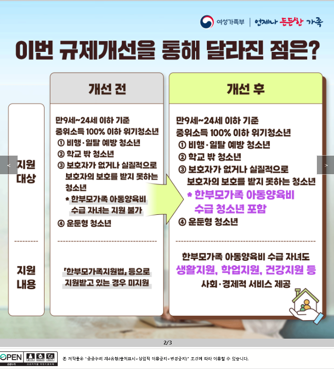 *한부모가족 아동양육비 수급 청소년 포함